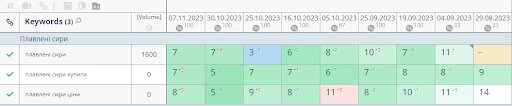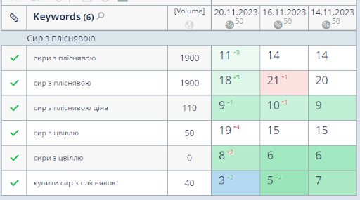 Some examples of keyword rankings: