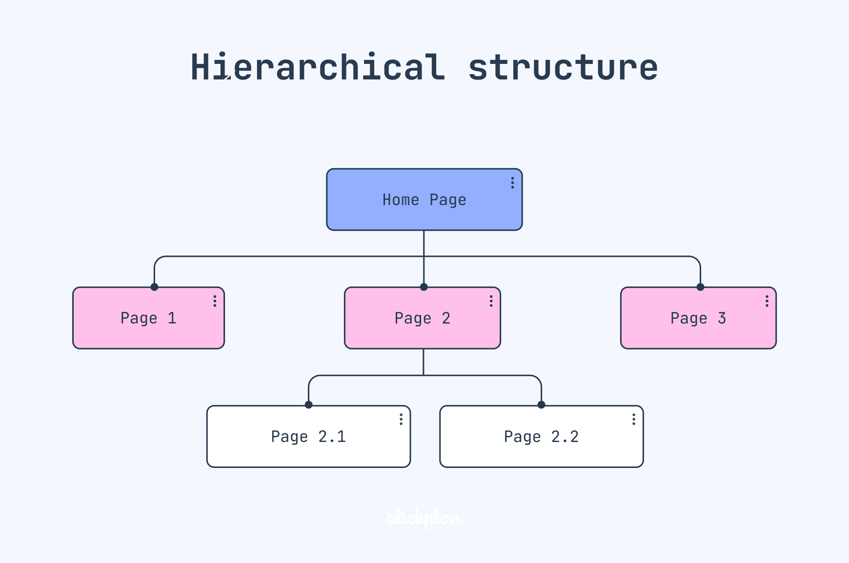 Website architecture refers to the schematic of how pages relate and how content is organized. A well-structured site shows the path a user can take to find the necessary material and which pages on your website they move through. This is an example of website architecture best practices, helping both users and bots navigate your site.