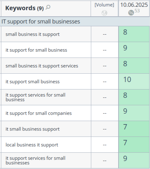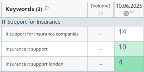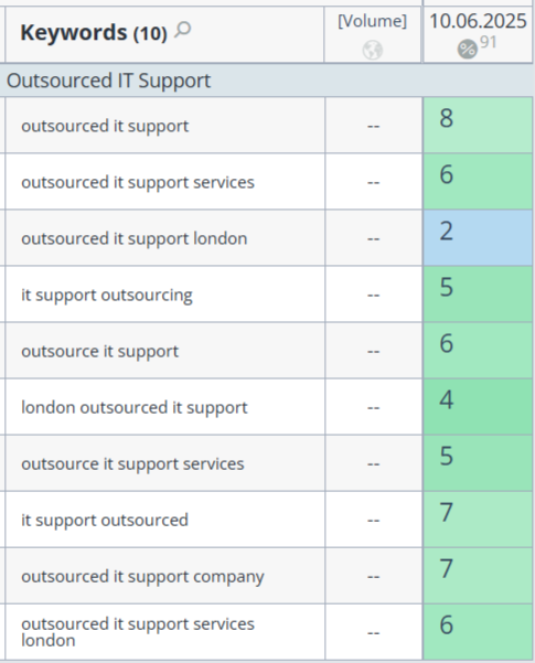 - Competitors: Local IT support companies in London with strong content and backlink profiles.