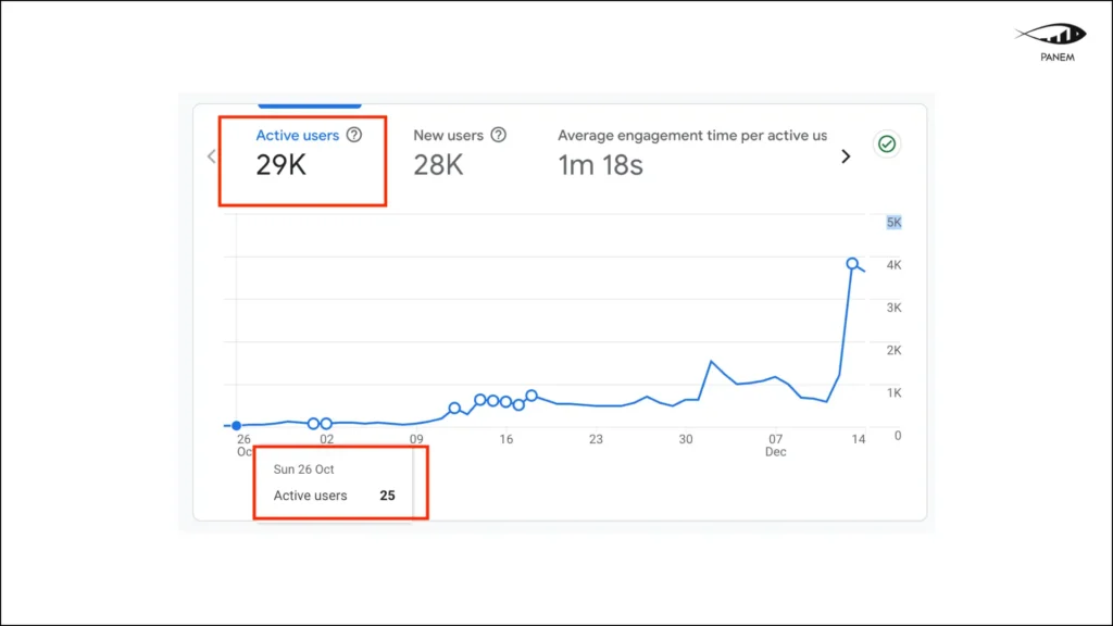 GA4 data confirms rapid user growth shortly after launch, with organic traffic becoming the primary driver of user acquisition within the first weeks.