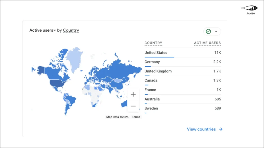 Top countries by active users: